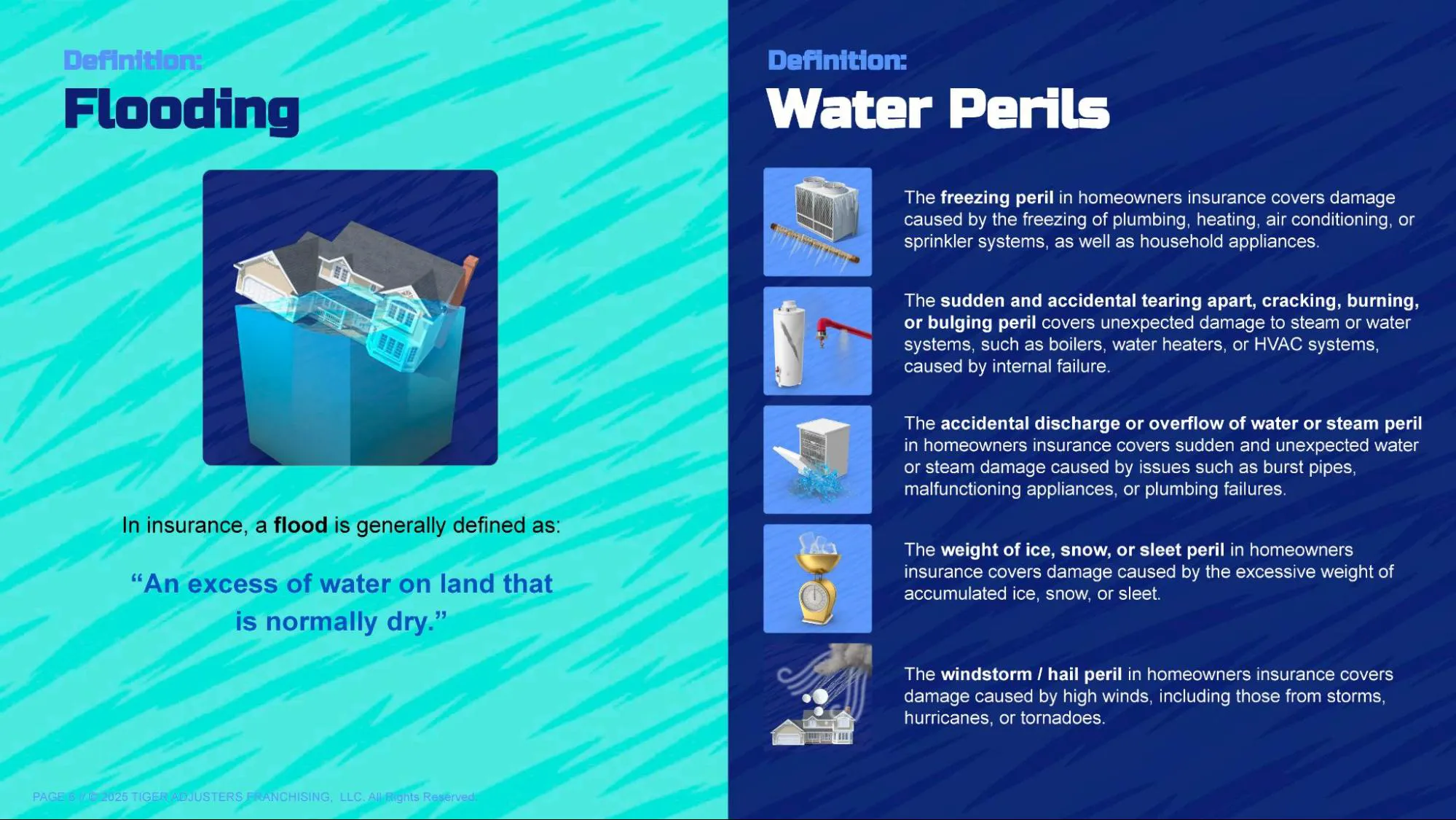 Within property insurance, a "flood” is generally defined as an excess of water on land that is normally dry, covering two or more acres of land or affecting two or more properties (one of which is yours). It typically involves rising water from natural sources like overflowing rivers, coastal storms, or heavy rainfall. This is distinctly different from other common water perils, such as burst pipes or accidental discharge within your home.
